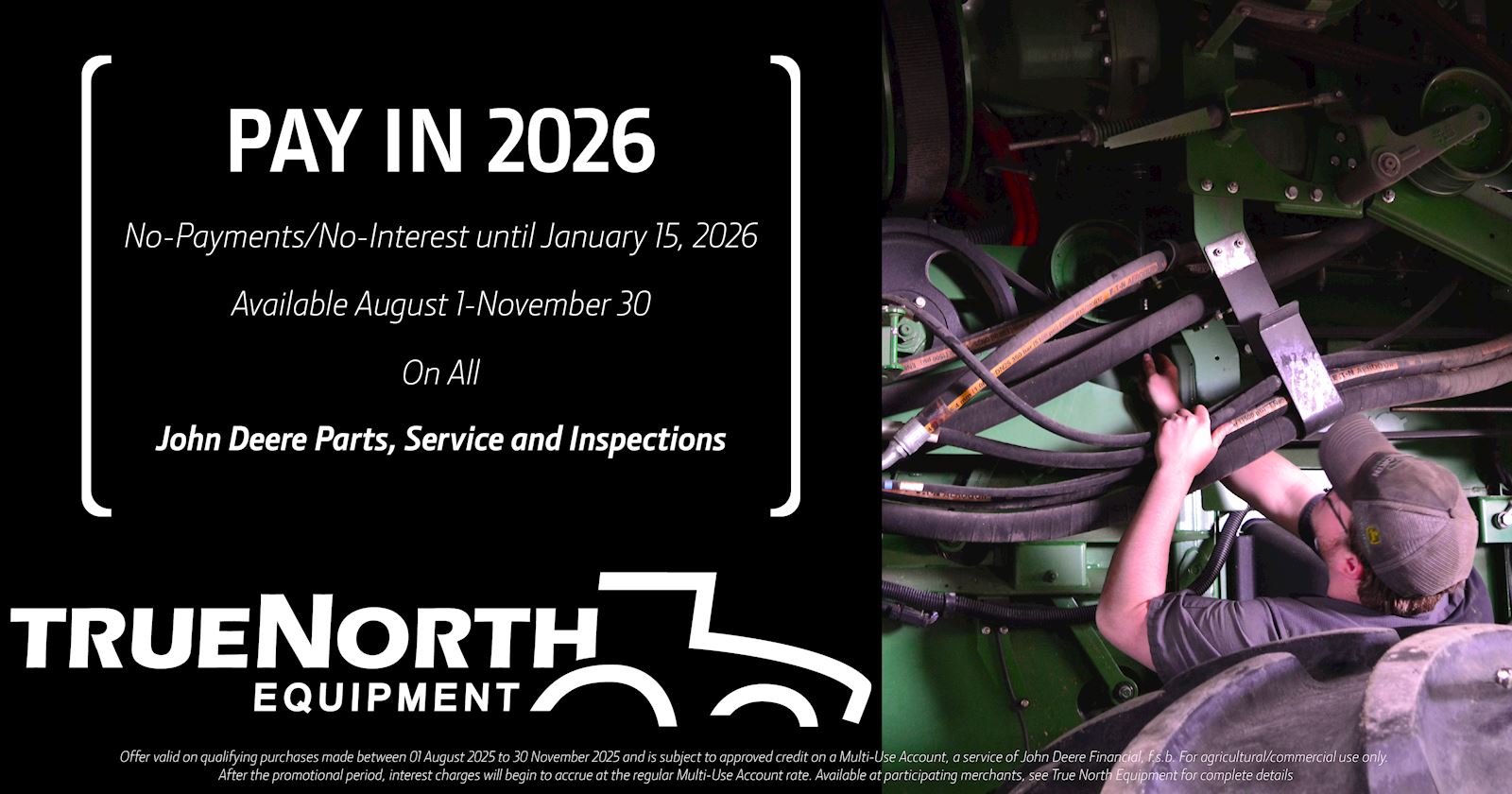 Take advantage of the No Payments, No Interest Financing available at True North Equipment!